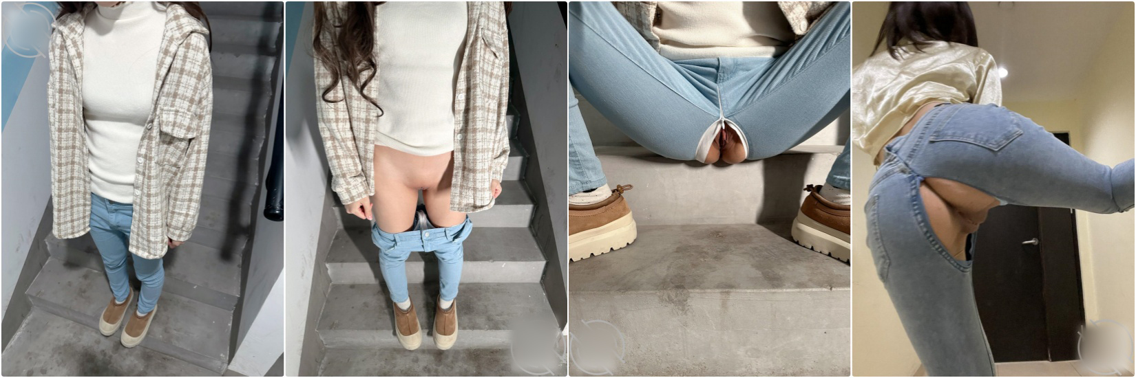 她走在前面,穿着紧身牛仔裤,屁股扭得诱人。我咽了口唾沫,但真没多想。进了楼道,她突然停下,转身把我拉进角落,背靠墙,眼睛直勾勾地看着我:“其实……我今天穿了这条裤子,就是想给你看。